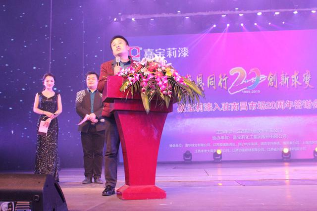 南昌市装饰行业协会会长甘钧先生致辞,肯定了嘉宝莉进驻南昌这20年取得的骄人成绩,感谢南昌嘉宝莉为南昌装饰行业做出的巨大贡献,并给予更多的期待。