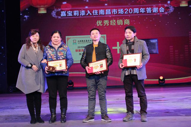 南昌嘉宝莉20周年,涌现出非常多的优秀员工。会上,对表现优秀的员工及经销商进行了颁奖仪式。