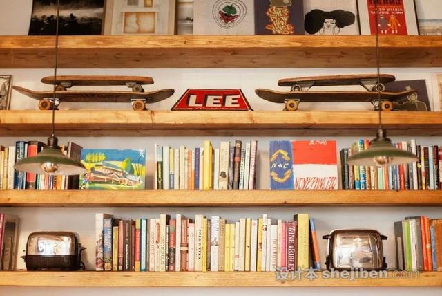 在木质搁架下,存储了房主从各地带来的收藏品和书籍。