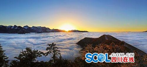 “通天路”的尽头,即为修建该路时被“意外”发现的一处名为达瓦更扎的全新360度观景平台。通过这一观景平台,既可环顾北面的四姑娘山、南面的帕格拉神山、西面的贡嘎群峰等名山,也可将云瀑、草甸、森林、湖泊、峡谷、藏寨等各类景观尽收眼底。