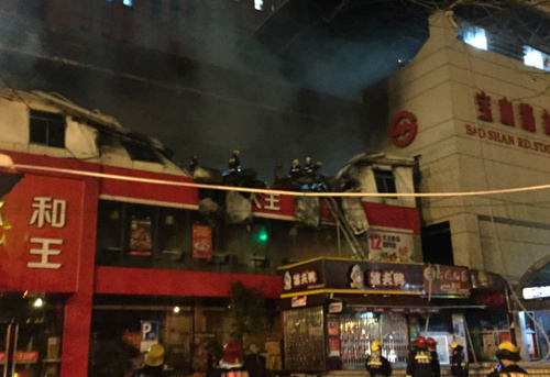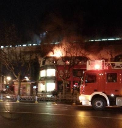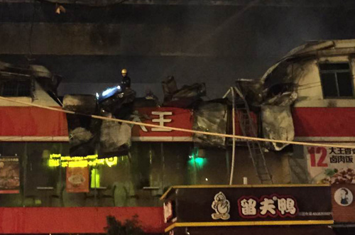 永和大王二层顶部已被烧得面目全非