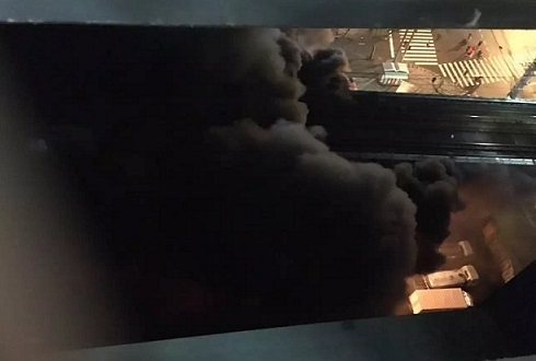 起火现场火势较猛,浓烟滚滚