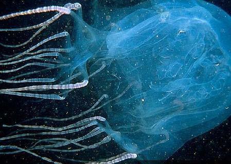 如果你在海中游泳时不幸被灯水母的“武器”(触角)缠住,就如同被几十条烧红的鞭子同时抽打一般,让你在极其疼痛中饱受恶心、呕吐、呼吸困难的摧残,然后很快毙命。虽然人类必须被至少10米长的触角缠住,才会被注射能致命的毒液量,可一只灯水母就有60只触角,而且每只触角长达9米,其刺丝囊满满地排列在上面,所以人类在海里一旦被它的触角粘上,通常是必死无疑。不过,灯水母的刺丝囊只有在接触到人类皮肤表面或覆有鳞片的皮肤时才会因化学作用起反应,因此想保住性命,就得在你的皮肤与灯水母之间放置障碍物。于是,足智多谋的澳洲海岸巡逻队员在巡逻海滩时会在手脚上穿戴女式长筒丝袜。只有灯水母才能让澳洲的男子汉们丢尽男子汉气概,第一名不是它又能是谁呢?