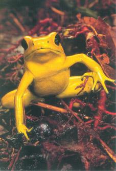 毒剑蛙和其它的两栖动物一样,它的皮肤里有许多腺体,能分泌粘液以润滑皮肤和保护自己,它的分泌物毒性很强,是它成为世界上最毒的动物之一。除了人以外,它没有其它的天敌。在南美哥伦比亚西部崔柯地方的毒剑蛙分泌的蛙毒,是目前世界上所知道的最厉害的毒,仅1克的十万分之一便足够使一个人中毒死亡。