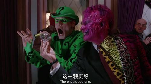 金凯瑞作为一名优秀的喜剧演员,在饰演谜语人这个角色时几乎是沿用了他在《变相怪杰》中的表演风格,都是一个小人物在一种强大力量的掩护下进行着疯狂的举动,只不过作为变相怪杰里他是混乱正义,而作为谜语人他是混乱邪恶。谜语人这个没什么战斗力只靠头脑解决问题的角色在金凯瑞的扮演下非常出彩,他那夸张的表情和形体动作让人过目不忘,成为了经典的反派形象。