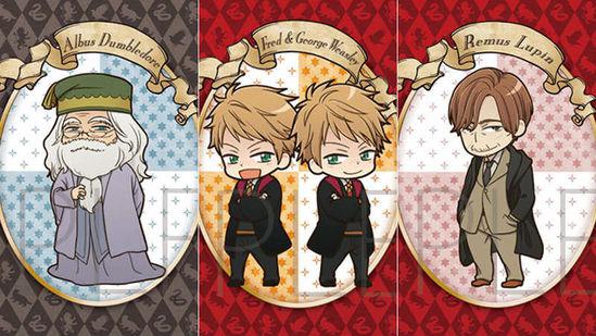 这是《哈利·波特》系列的人物第一次有了官方的卡通形象,第一批公布的包括波特三人组、弗雷德兄弟、马尔福、斯内普、邓布利多、小天狼星、卢平、詹姆·波特、巴克比克和海德威共十三个形象,全部都是十分典型的日系萌系动画画风。这些人物的形象设计由日本的一家设计公司以及五大日本电影公司之一松竹映画共同设计。