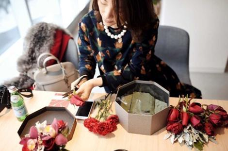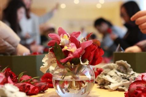 在花艺老师的指导下,现场嘉宾亲自动手制作花艺伴手礼