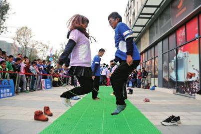 “男生双手背在身后,胸前背上定制书包,女生在隔男生3.5米的距离,向书包内投掷乒乓球。在投掷乒乓球的过程中,男生不得超越站立线接球,也不得使用双手扶住书包。”作为本次“博大杯·首届情侣趣味大冲关”活动的第1关,“爱的乒乓球”的游戏算是让参赛情侣们以一个轻松的状态来迎战。但进入比赛第2关卡,要在指压板上脱鞋子跳绳,还必须是男女双方一起完成,这就让比赛情侣们尖叫起来了。“仅仅是踩在指压板上都让人受不了,还要一起跳绳,真的太痛了。”参赛情侣说道。“虽然前两关游戏都不算很难,但考验的却是情侣间的默契,如果两人配合不好,是不能得到高分的。”参赛选手小罗说。