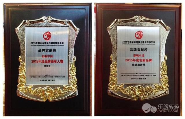2015中国企业领袖与媒体领袖年会于本年度12月13日在京盛大召开,被誉为中国品牌传播界“奥斯卡”的2015影响中国“品牌贡献榜”榜单也盛大揭晓。值得庆贺的是在本次年会上,乐途旅游网以及乐途旅游网总裁刘旭明先生双双获奖,可谓双喜临门。乐途旅游网及其总裁分别荣获“品牌贡献榜·影响中国2015年度创新品牌”奖和“品牌贡献榜·影响中国2015年度品牌领军人物”奖。 由中国企业领袖与媒体领袖年会发起、推选历时四个月的“品牌贡献榜”不仅仅是一张全面而富有公信力的榜单,更已成为品牌传播界的影响力风向标。