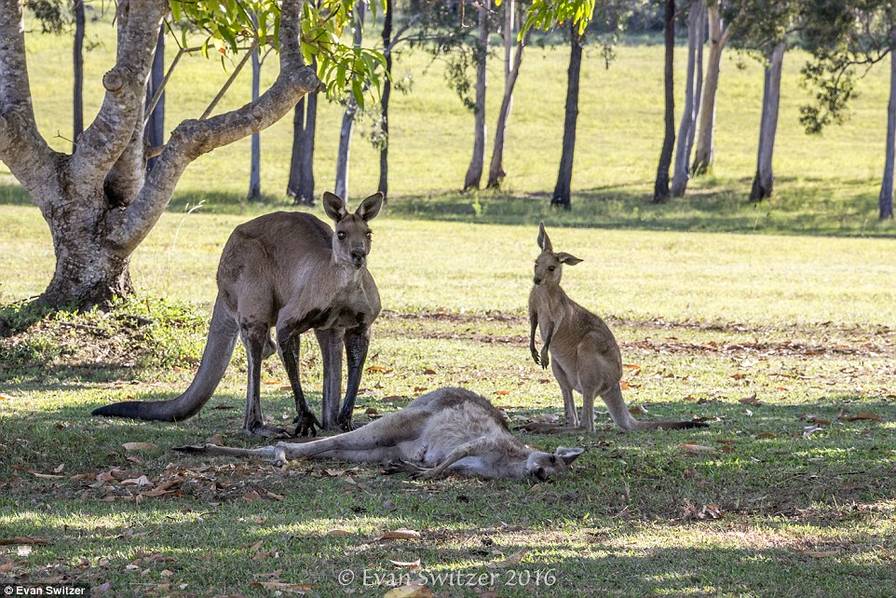 早上,Evan Switzer在澳大利亚昆士兰弗雷泽岛的原始林区拍到这一幕。“他似乎想要把她抱起来,但她不能站立而摔到地上。他轻轻推她,站在她身边......这是一个非常特殊的景象,他只是在悼念他的伴侣。”