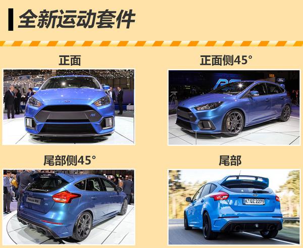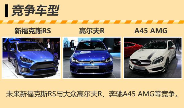 在“性能小钢炮”这一细分市场中,目前已有众多车型,包括大众高尔夫R、奥迪RS3以及奔驰A45 AMG等。尤其以大众高尔夫R为例,通过较早的进入中国市场销售,已拥有大批忠实车迷。目前高尔夫R已推出第七代车型,新车在外观方面延续普通版设计,但尾部排气管则放弃经典的中置双出设计,改为双边双出。但新福克斯RS相比高尔夫R拥有更加澎湃的动力,同时6速手动变速箱也更富乐趣,这也更能吸引一些喜爱纯粹驾驶的人群。