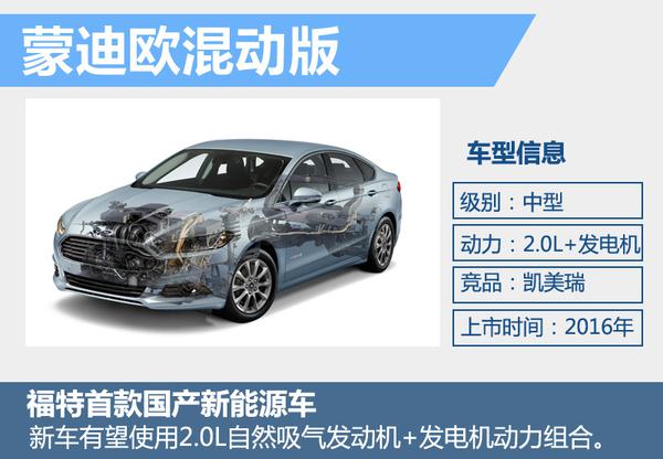 | 长安福特 | 蒙迪欧混动版 | 中型 | 混动轿车 |