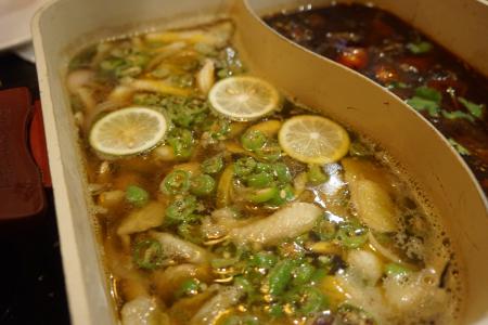 以前就很喜欢新辣道鱼火锅,特别是辣锅,因为他们辣锅选用的鱼是梭边鱼,梭边鱼是一种无鳞鱼,无鳞鱼肉质鲜美,脂肪含量相对于有鳞鱼来说会多一点,所以更美味。这次的新品是鲷鱼火锅,里面添加了四川的泡椒、青柠、姜等。新辣道的鲷鱼都是来自海南海口市,这边的鲷鱼在海水和河水中同时活动,所以会有海鱼的鲜味,又有河鱼肉质的嫩滑。有些人会觉得海鱼腥,所以在鲷鱼的这个火锅里面加了泡椒和青柠来减轻鲷鱼的腥味。 新辣道还贴心的把鲷鱼的刺都清除了,做成片状,也很适合一些小孩和老人来食用,不用担心会卡刺的情况。