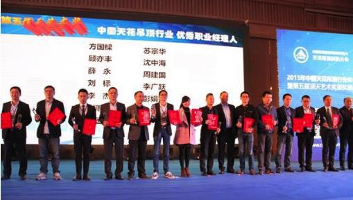 方国樑【左一】获2015年度中国天花吊顶行业“优秀职业经理人”