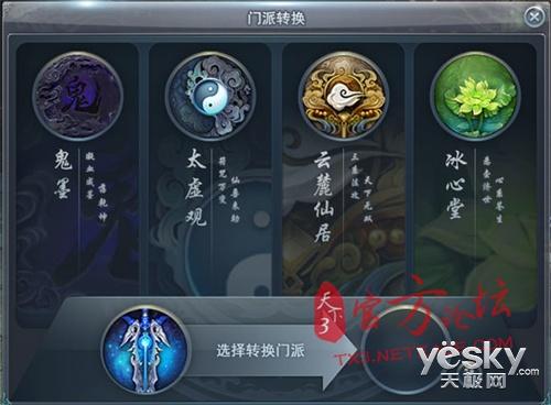 门派转换系统开放后,将新增部分装备的互转,但仅能将非当前本门派的装备转换成当前本门派的装备。