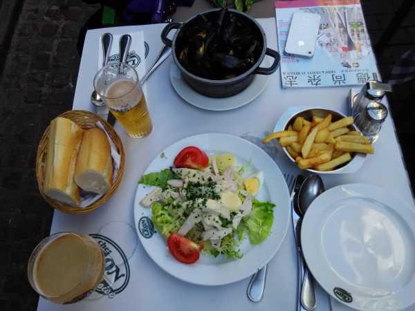 不知不觉到了晚餐时间,我们决定就在大广场附近的一家蚂蜂窝上推荐的餐厅吃青口了。