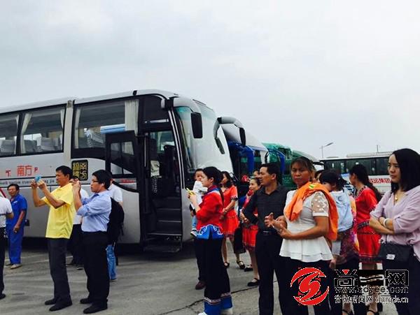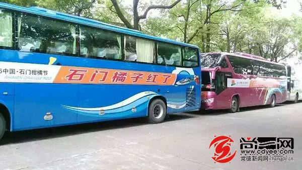 “石门橘子红了”旅游大巴。尚一网记者 覃事恒 熊佳 摄