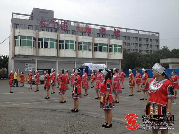 土家妹子在太子庙服务区表演。尚一网记者 覃事恒 熊佳 摄