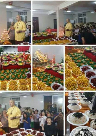 虽然圈外人难以知道会馆里面的布置和活动,但在去年2月15日,名为“祖古白玛奥色仁波切”的微信公号文章中介绍,当年的农历正月十五,白玛奥色在观自在文化艺术会馆举行了“马年大吉祥缘起斋宴”。文章中配以的图片显示,会馆内摆有佛像,众人在佛像前跪拜祈祷,食用斋饭。