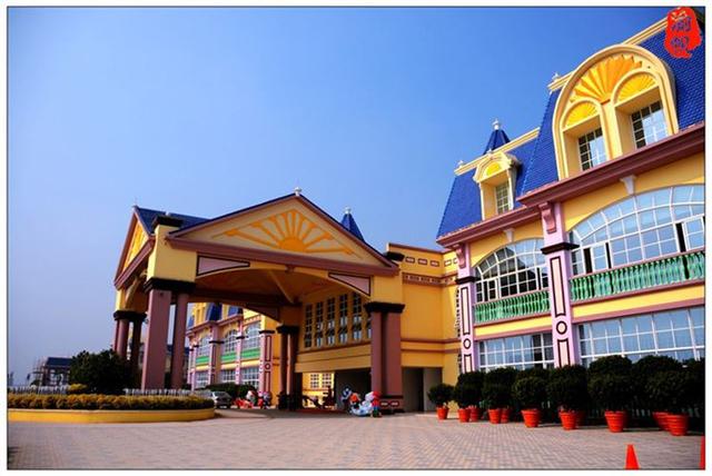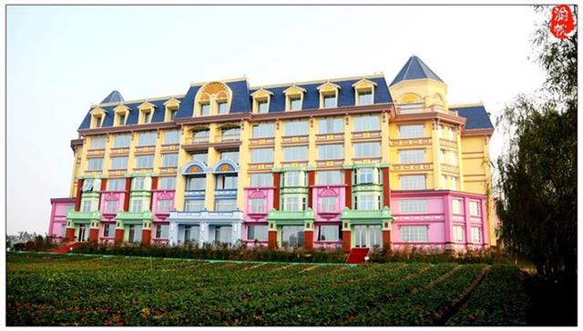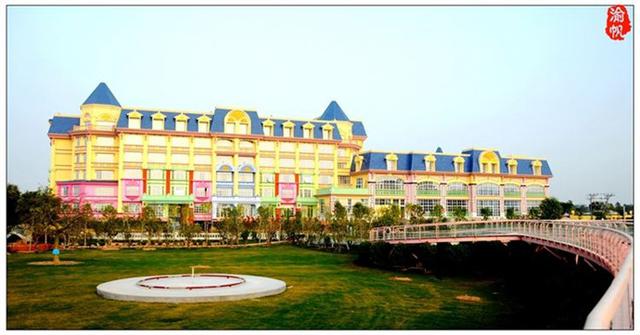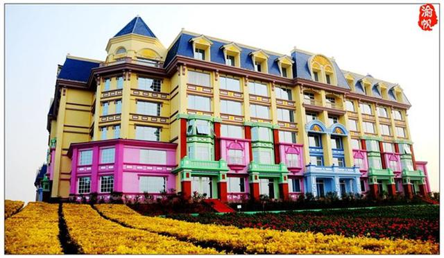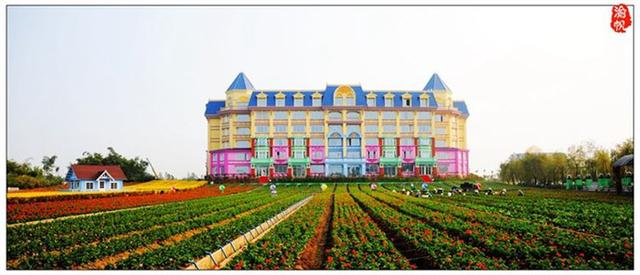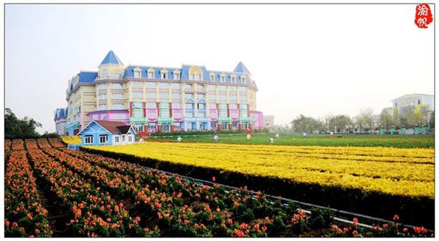 酒店不仅被鲜花环绕,其城堡的外观造形亦很是梦幻。1月26日上午,我们从海珠海客站坐上前往万顷沙的大巴,大约一个小时左右到达,然后转蕉门地铁站到百万葵园的23路公交车(2路、25路也可以),半个小时左右到达目的地,首先映入眼帘的便是花之恋酒店的主体建筑——黛斯堡。在欧式城堡的海洋蓝的尖屋顶下,明亮黄色的墙体、绿色、粉色等缤纷的色彩装饰着窗棂、门框,与酒店建筑外的万亩花田遥相呼应,恍若置身于浪漫梦幻的安徒生童话世界。