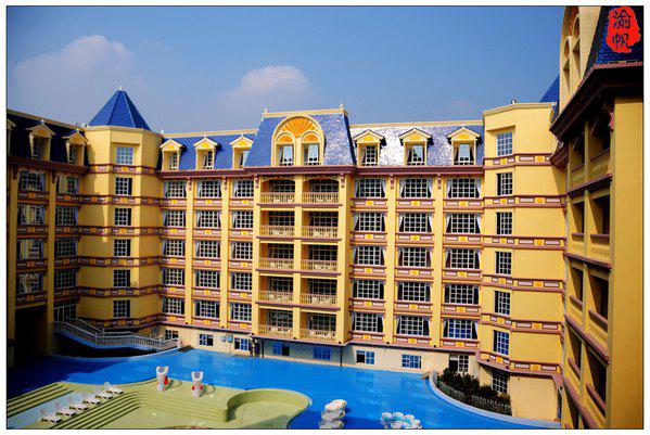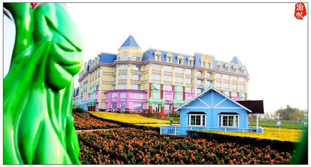 直到最近入住了一家酒店,发现它与梦想中的花园城堡居然有很多相似,首先从字面上理解,有花园、有城堡,它位于一个四季鲜花不败的大花园中,大家都知道“春华秋实、夏长冬藏”四季轮回,春天是百花齐放的季节,而秋冬则是植物催阵待新的时节,可是那里却有悖常理的存在于四季常盛,而且还万紫千红、五彩缤纷,真如童话一般的存在,置身其中,随时随地都能感受到扑鼻的自然芬芳,轻轻的呼吸便能感觉到身体的享受。而那里的主体建筑则是一个古典的欧式城堡,海洋般蓝色的尖顶下方,明亮黄色的墙体,粉色、绿色、白色等缤纷色彩装扮的窗棂、门框、玻璃等,与建筑周围的万亩花田浑然一体、遥相呼应,恍若安徒生梦幻般的童话世界一般,只是多了些真实,少了些梦幻。它,就是广州百万葵园的花之恋酒店。