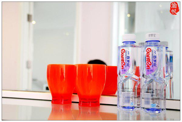 免费提供的百岁山矿泉水,及很Q的水杯