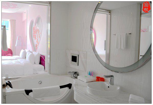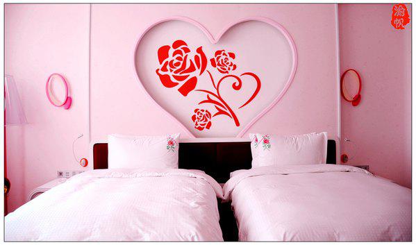 我们入住的是粉红色的浪漫玫瑰花房,房间的墙上、地板、天花……到处都是浪漫的玫瑰元素,当我用手机随拍了一些图片发到朋友圈时,大家都表示惊叹,很多朋友感叹像婚房一般