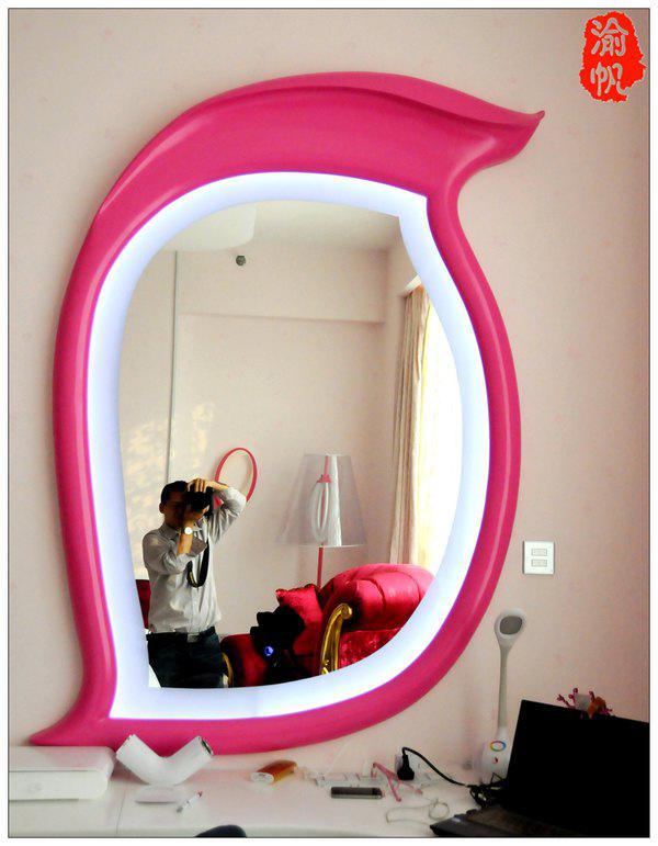 玫瑰花瓣形的美人镜,上面有触摸开关,轻轻在镜面上触碰便可自如开关。