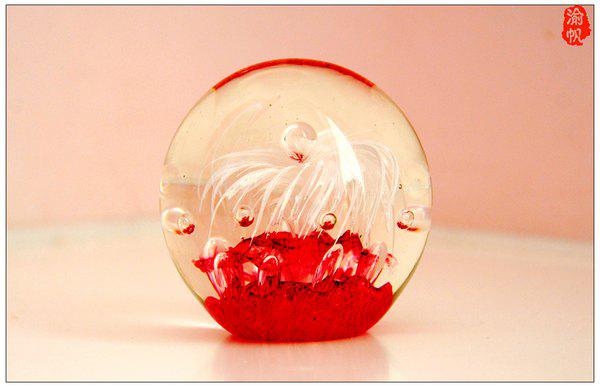 桌台上的玻璃球。
