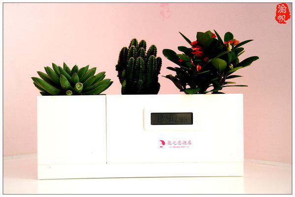 不仅如此,渝帆还深切感受到了一些前沿科技在花之恋酒店的应用,比如说3D打印技术在食物上的印用,是不是觉得很新潮?“印象葵园”6D灯光秀听起来是不是觉得4D、5D都弱暴了?植特生长电能应用(房间的桌台上都有一个长方形的植物盆栽,下方是一个电子时钟,而里面却没有电池,其能量全靠盆栽里面植特生长来维持)是不是觉得很先进?这些技术之前都只在媒体或展会上看到过,而真正的实际运用的,这些都是第一次见到,算是涨姿势了!