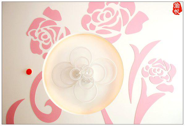 房间的顶上也有粉色的玫瑰图案