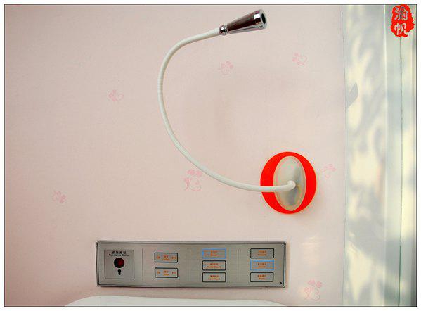 床头的开头可以控制房间所有的灯,以及窗帘窗纱,而床头的伸缩灯则是触摸式开关,轻轻的触摸金属灯头,便可以开启或关闭。
