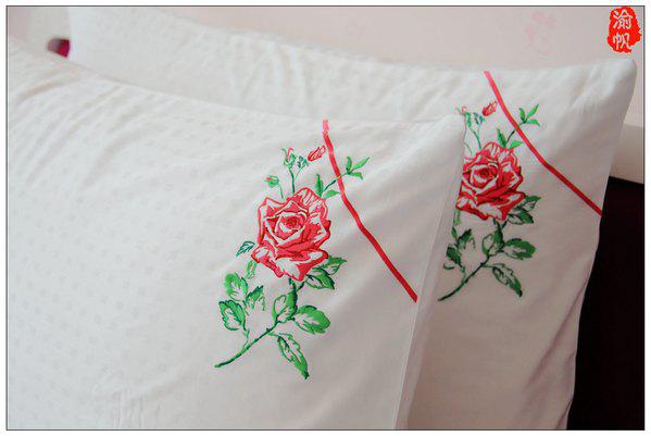 枕头上绣有精美的玫瑰花