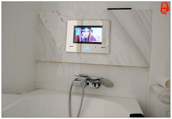 浴缸前面及马桶前方都各有一个小型液晶电视,无论身在房间何处,都不会觉得枯燥。