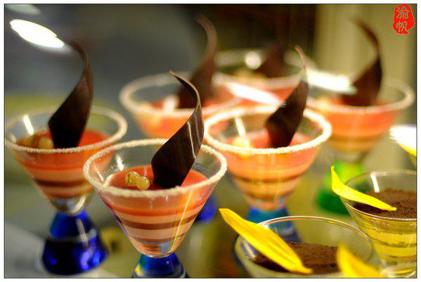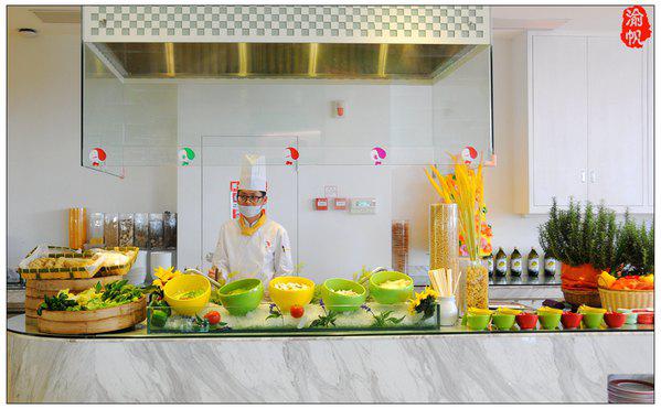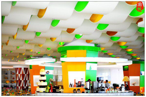 在花之恋酒店,不仅是视觉上的享受,味觉方面,亦可以满足一个吃货的各种需求,在红、绿、黄三色交织、呈欢快时尚风格的西餐厅内,无论是葵花鸡豪会宴区、还是国际缤纷美食区,或者南沙特色美食区,你都可以品尝到美味绝伦的酒店佳肴。色香俱全的中东烧烤、奢侈的法式香草焗蜗牛、经典的日本寿司三文鱼、滋味十足的陈年花雕浸鸡子、霸道的龙利卷葵花鸡柳、沸腾的西梅酿鸡胸、高科技的3D打印食品、外酥内柔的马卡龙、香喷喷的葵花鸡扒、粒粒香珍肝炒饭……等等美食,纵使是渝帆这样的吃货,亦有停不下来的尴尬。