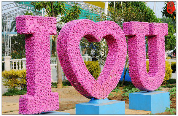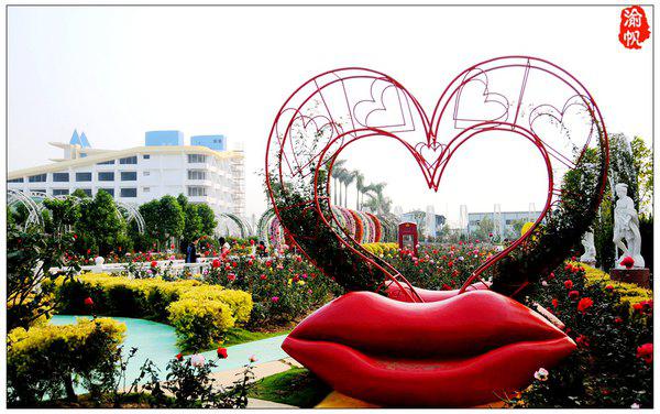玫瑰园内的爱情主题雕塑,拍照很的元素。