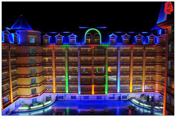 最值得推荐的,还是酒店特有的6D灯光秀,想想之前大家说的什么3D、4D都弱爆了,这里直接是6D灯光 晚上八点,在梦幻城堡的外墙上,七彩花田间,通过声光电的神奇结合,一幅幅美妙的画面徐徐展开,一个个巧妙的故事精彩上演,我们闻着沁人花香,看着振憾灯光,很是感叹,很是享受!!其实不仅是七彩花田一面,在任何角度欣赏花之恋酒店的黛斯堡都非常漂亮,鲜花环绕,张灯结彩,恍若仙境!