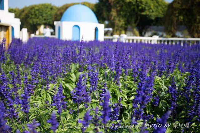 从彩云飞餐厅出来,门口就是一大片薰衣草园,法国的普罗旺斯与希腊的圣托里尼风情融合,这里是拍婚纱照的天堂,蓬勃生长着的生命,紫色浪漫,我们迷醉在伊甸园里。