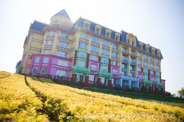 图中的七彩花田是我早上在酒店起床后打开窗户拍的,这个仿造了日本北海道富良野的花田,黄,红,白,粉,紫铺成的万亩花海,在酒店上可以俯瞰田园风光,也可以坐在小火车上游览,还可以在舞台上边看表演边赏花海。