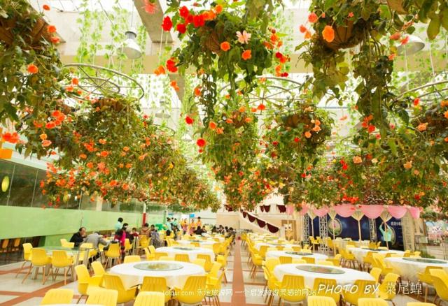 彩云飞餐厅,来自墨西哥的鲜花生长在空中,与餐厅浑然一体,无处不在的花,在这样的餐厅用餐,是多么写意的事情。