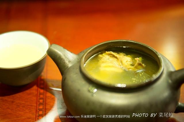 清蒸葵花鸡:原汁原味,几乎不加调料。热腾腾的鸡端上来,鸡肉带点淡黄,集清甜、甘香、骨脆的特点于一身,而且有美容养颜的功效。
