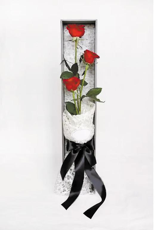 情人节之际,除了可以自己创作,花店还重点推介经典的红玫瑰系列。采用荷兰进口玫瑰,素雅的盒子或者白色的包装,更能凸显玫瑰的红艳。
