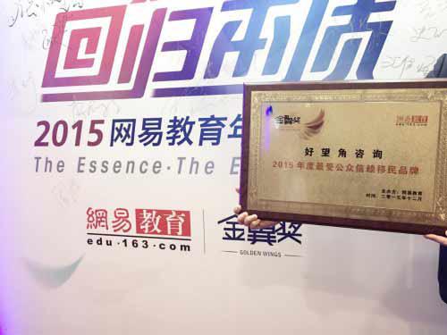 12月3日,宜信财富旗下专注于投资移民品牌”好望角咨询“,受邀参加网易教育在京举办的“教育回归本质--2015金翼奖”颁奖盛典,并荣获“年度最受公众信赖移民品牌”大奖。此次盛典由中国教育行业领军人物、百余家教育机构、34省市主流媒体、3.6亿网易新闻客户端用户共同打造,评选结果由网络投票、专家评审产生。