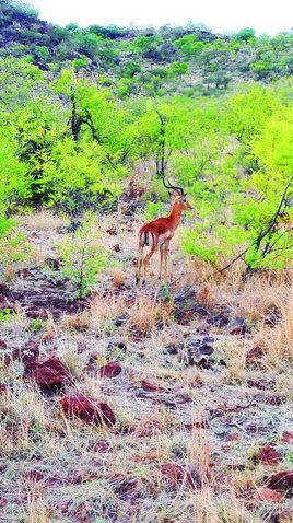 “珍珠鸡!”导游周建中先生指向和土地一样颜色的草丛,果然几只鸡正不停地啄着食。“现在开始练大家的眼力,等走出这个保护区后,大家的眼力都会大大提高”,大家被揶揄着清醒过来,睁大眼睛企图找到“非洲五大兽”。可是,满眼望去,远处是绿色覆盖的丘陵,近处是与土地同色的麦黄色与绿色参差的灌木,怎么也没法相信这样的地方会有野生动物。