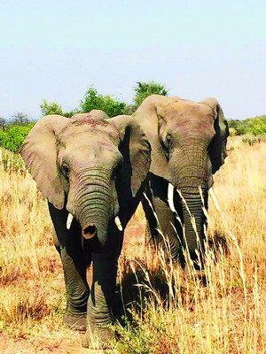 比邻斯堡国家公园占地面积500多平方公里,丘陵、草原、森林、湖泊广袤无垠。天气一会儿雨一会儿阴一会儿晴,野猪、跳羚羊、角马、斑马、河马、长颈鹿、花狐狸……无数种野生动物从眼前掠过。置身完全原始自然的一切,仿佛来到亘古久远的史前世界。“看,看,狮子在那”,又是周导发现了“大家伙”。虽然几百米远有些模糊,但大家的眼力显然已经练出来。场景有些惨烈:两只狮子正张着血盆大口凶猛地撕咬着可怜的小动物。周导说,那小动物可能就是刚才我们看到的那只落单的跳羚羊。
