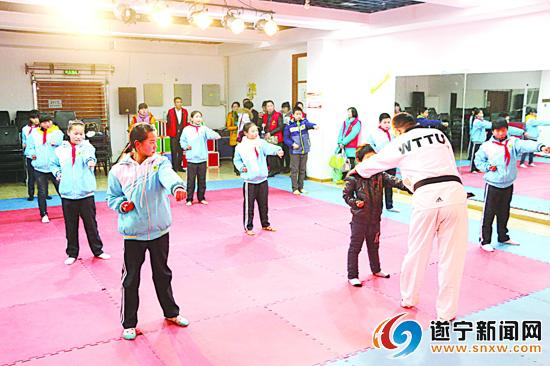 孩子们体验跆拳道课程