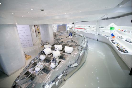 空间内部的陈设,也紧密贴合整体构思。一楼是博物馆和珠宝的结合,二楼则是多功能生活空间——融合了金属质感的装置艺术、抽象裂纹展示柜、水吧,还有1000多件全球顶尖匠人手工打造、从日常生活的审美意识中提炼而成的艺术典藏。徜徉其间,你会感受到I Do品牌对于生活方式的理解,也能认知到一个品牌所能提供的最有趣的购物体验。