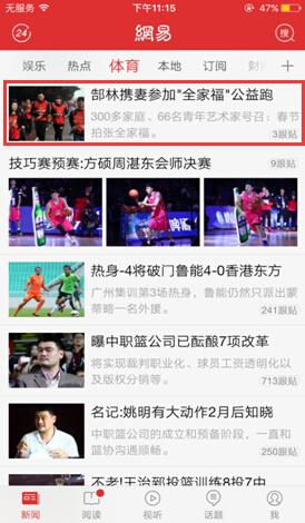 活动当天,网易客户端体育频道率先报道