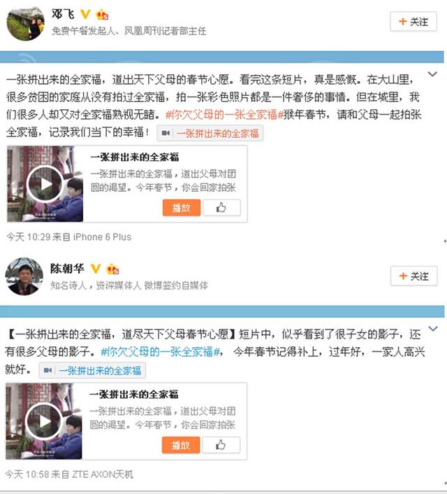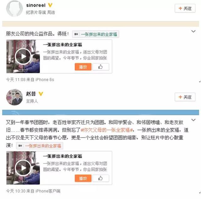 除了打造首部感人微电影,擅长情怀营销的金六福酒还分别推出了另外一条情怀小短片,传递“团圆是福”的理念,呼吁大家春节回家拍一张全家福,进一步加深“全家福行动”的公益影响力,以及金六福的品牌公益精神。