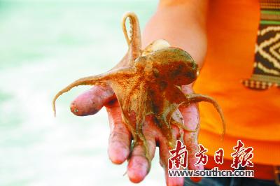 跟着渔民出海,捕捞海鲜。